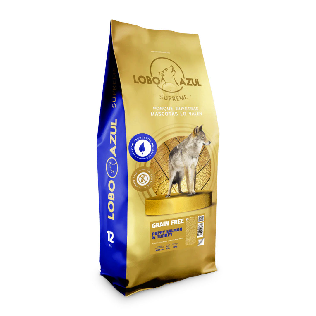 Alimento completo equilibrado para cachorros sin cereales. Con Salmón fresco, Pavo, Frutas y Verduras. Apto para problemas alérgicos.